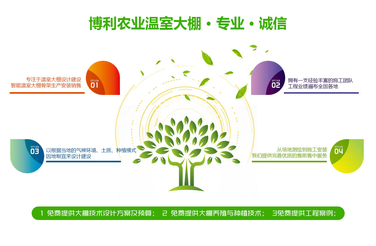 安陽博利農(nóng)業(yè)科技有限公司,是一家專業(yè)生產(chǎn)溫室大棚的現(xiàn)代化企業(yè)。公司擁有大棚材料生產(chǎn)線,各種加工折彎,縮頭等設(shè)備,及專業(yè)研發(fā)、技術(shù)人員,提供設(shè)計(jì)、制作、安裝及售后全程服務(wù)。公司在鍍塑鋼管大棚,幾字鋼、C型鋼溫室大棚,薄膜連體大棚,玻璃智能連棟大棚,反季節(jié)蔬菜溫室大棚,花卉大棚…